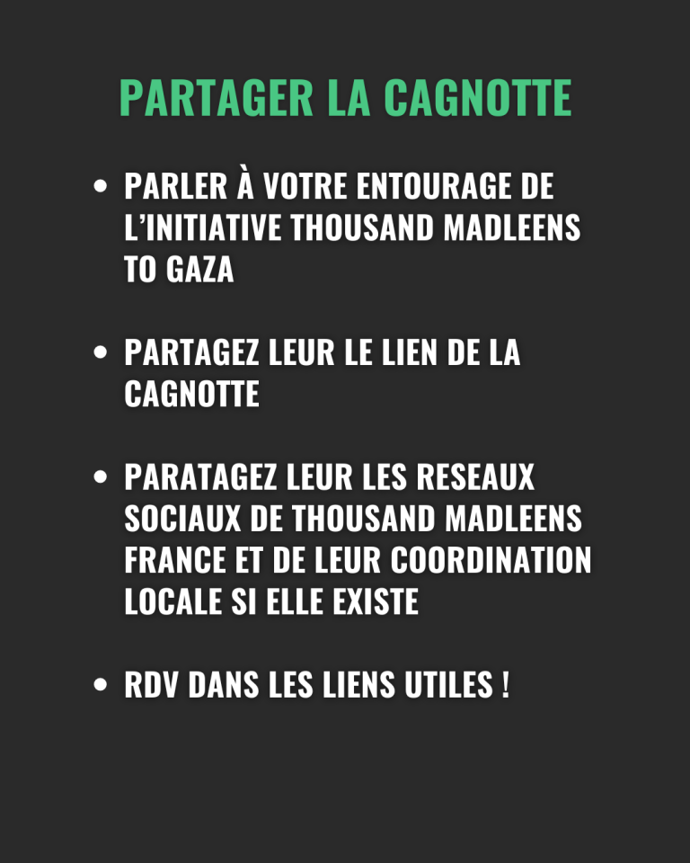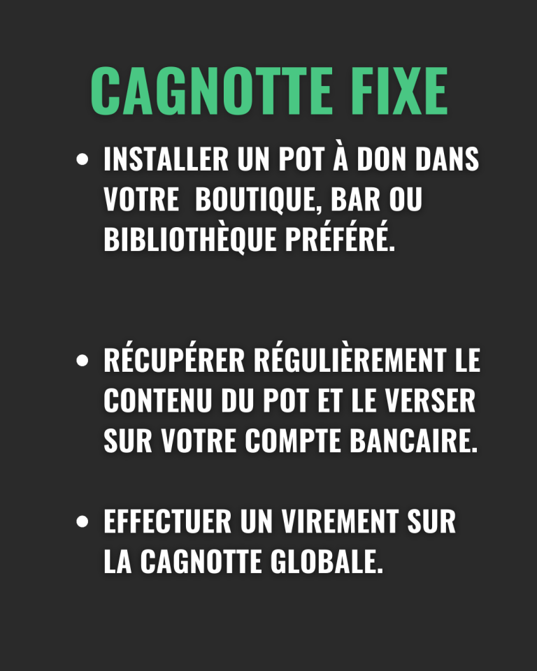 Les levées de fonds peuvent être menées de manière collective ou individuelle. Tous les virements sont à effectuer sur la cagnotte de Thousand Madleens France.